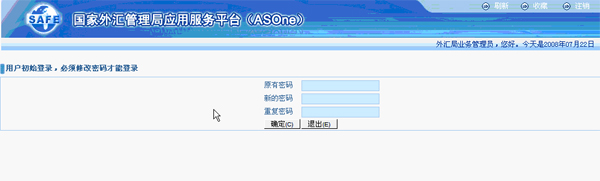 輸入組織機(jī)構(gòu)代碼、業(yè)務(wù)管理員用戶代碼(ba)和用戶密碼,然后回車或單擊登錄按鈕。系統(tǒng)對(duì)用戶的身份進(jìn)行認(rèn)證,認(rèn)證通過后,如果用戶是第一次登錄系統(tǒng),系統(tǒng)會(huì)要求修改密碼,如圖1-6所示。