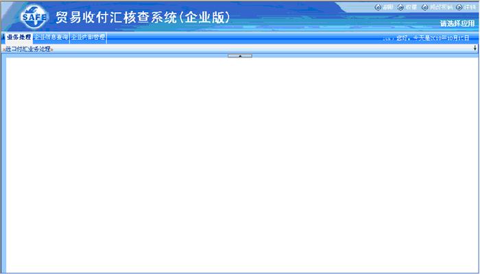 在圖2-7所示界面,用戶(hù)點(diǎn)擊“貿(mào)易收付匯核查系統(tǒng)(企業(yè)版)”,進(jìn)入系統(tǒng)企業(yè)版首頁(yè)面,如圖2-8所示。