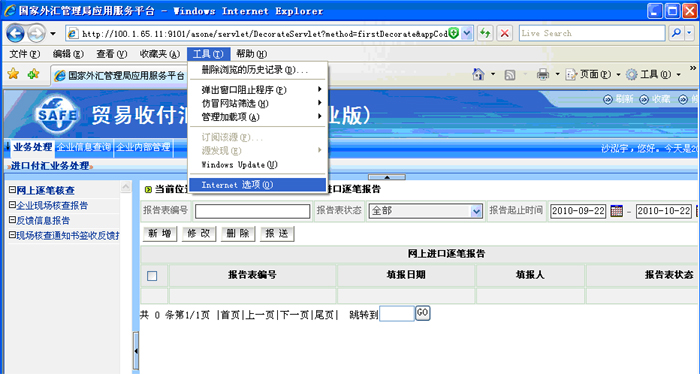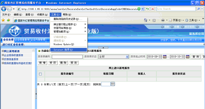 1、打開IE,點擊“工具”—“Internet選項”。如圖2-10: