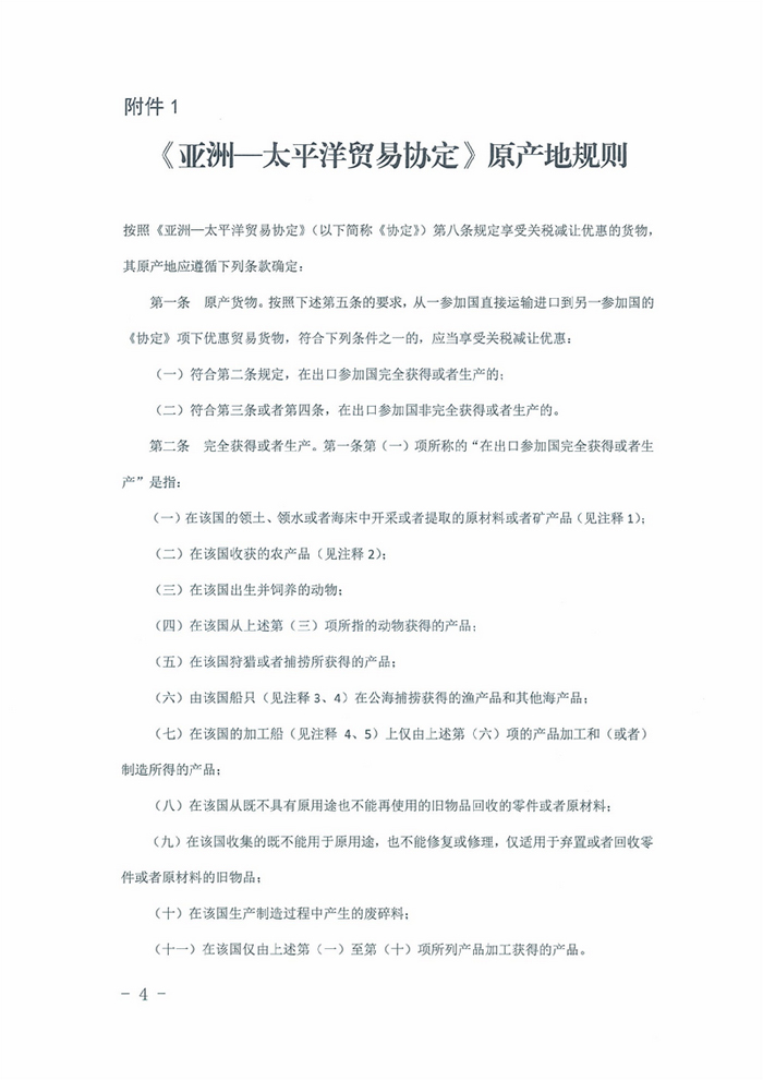 附件:1.亞太貿(mào)易協(xié)定原產(chǎn)地規(guī)則