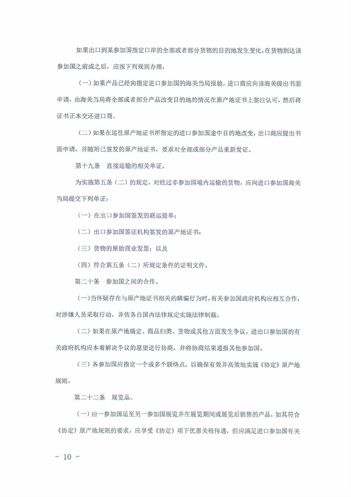 根據(jù)海關(guān)總署通報,為配合亞太貿(mào)易協(xié)定第四輪關(guān)稅減讓的實(shí)施,《<亞洲-太平洋貿(mào)易協(xié)定>第二修正案》已經(jīng)國務(wù)院核準(zhǔn)。該修正案對《亞洲-太平洋貿(mào)易協(xié)定》原產(chǎn)地規(guī)則、原產(chǎn)地證書有關(guān)內(nèi)容進(jìn)行了調(diào)整,并于2018年7月1日正式生效。我會系統(tǒng)按照修訂后的協(xié)定內(nèi)容做了亞太貿(mào)易協(xié)定項下原產(chǎn)地證書內(nèi)容調(diào)整,現(xiàn)將有關(guān)事宜通知如下: