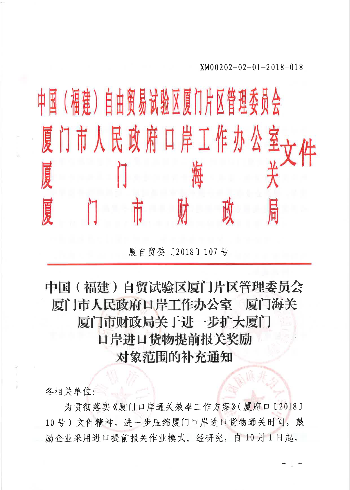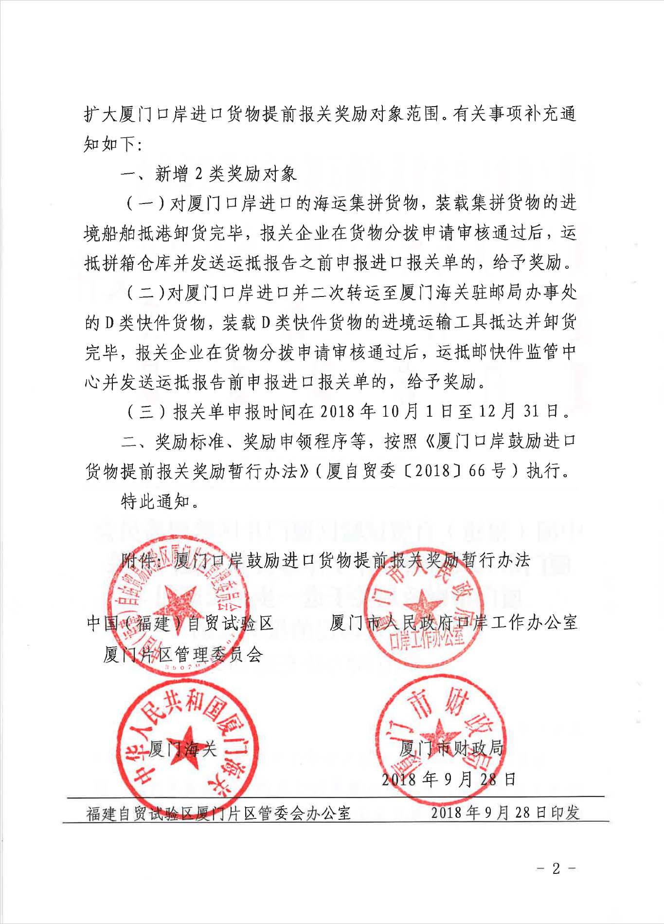 廈門口岸鼓勵進(jìn)口貨物提前報關(guān)獎勵暫行辦法