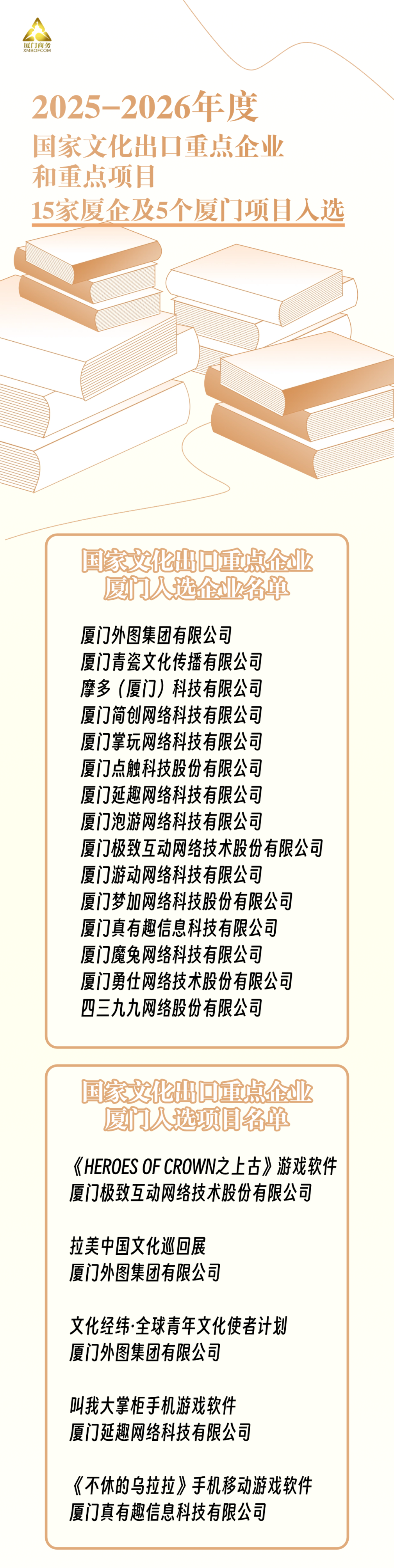 日前,商務(wù)部等四部門發(fā)布公告,我會(huì)會(huì)員企業(yè)廈門外圖集團(tuán)有限公司榮獲“2025—2026 年度國家文化出口重點(diǎn)企業(yè)”稱號,其“拉美中國文化巡回展”及“文化經(jīng)緯?全球青年文化使者計(jì)劃”入選“2025—2026 年度國家文化出口重點(diǎn)項(xiàng)目”。