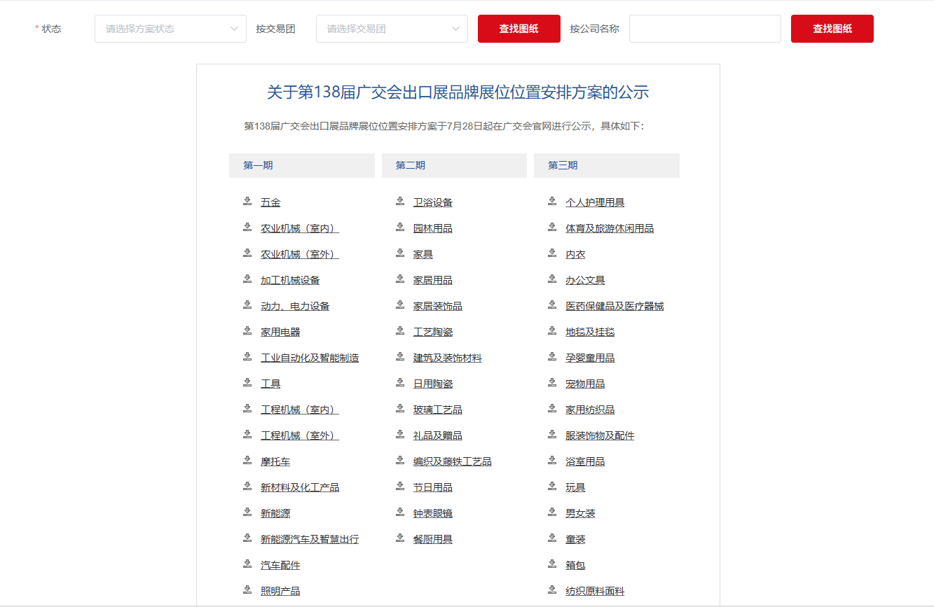 第138屆廣交會出口展品牌展位位置安排方案于7月28日起在廣交會官網(wǎng)進行公示,包括以下兩部分內(nèi)容: