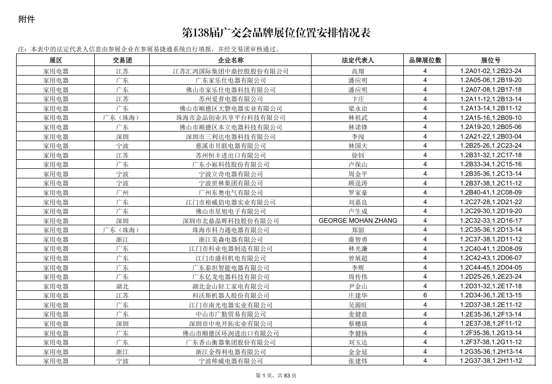 二是包含企業(yè)名稱、法人、展位號等信息的品牌展位位置安排情況表,公示網(wǎng)址為:https://www.cantonfair.org.cn/zh-CN/posts/913001623553708032,公示期至7月30日18時。